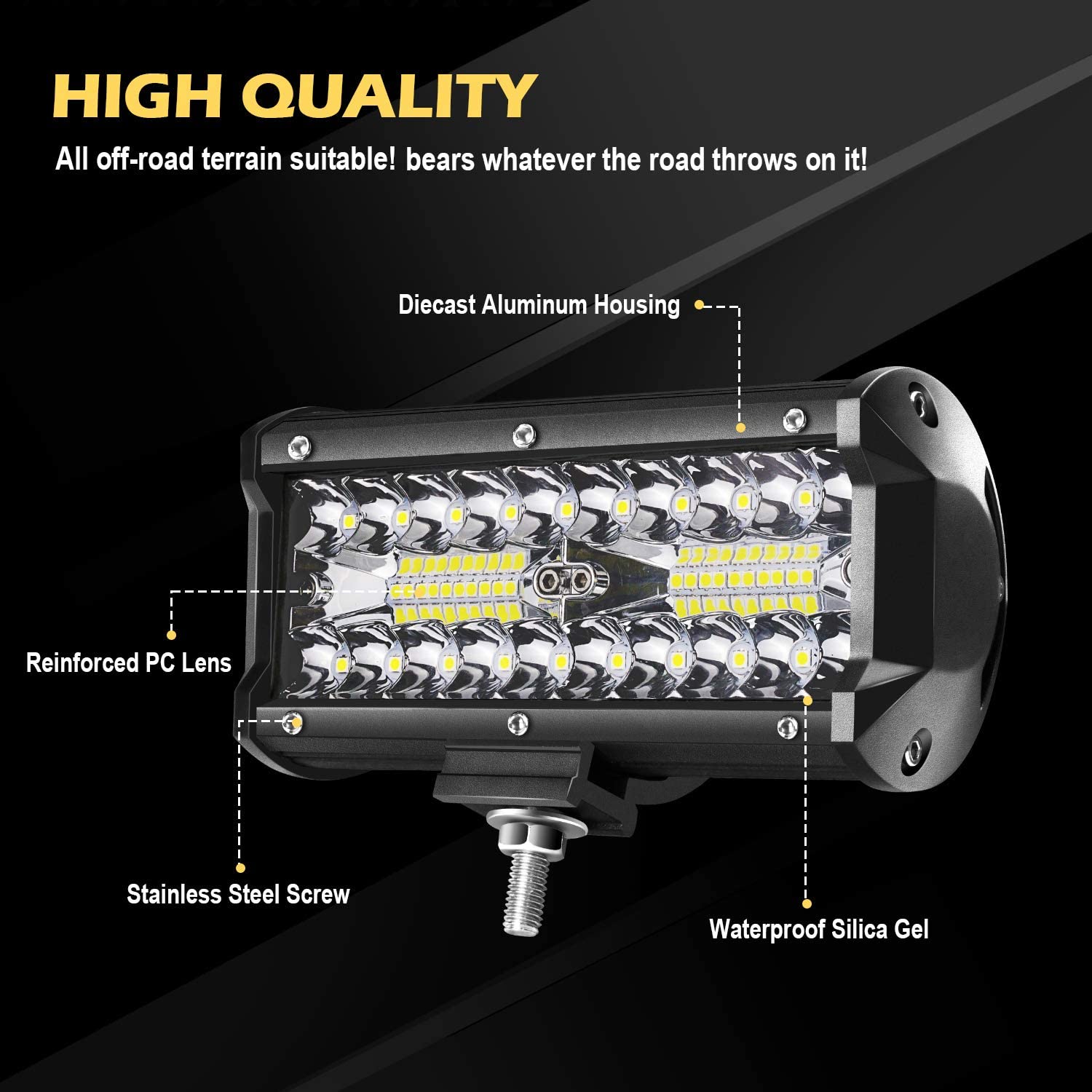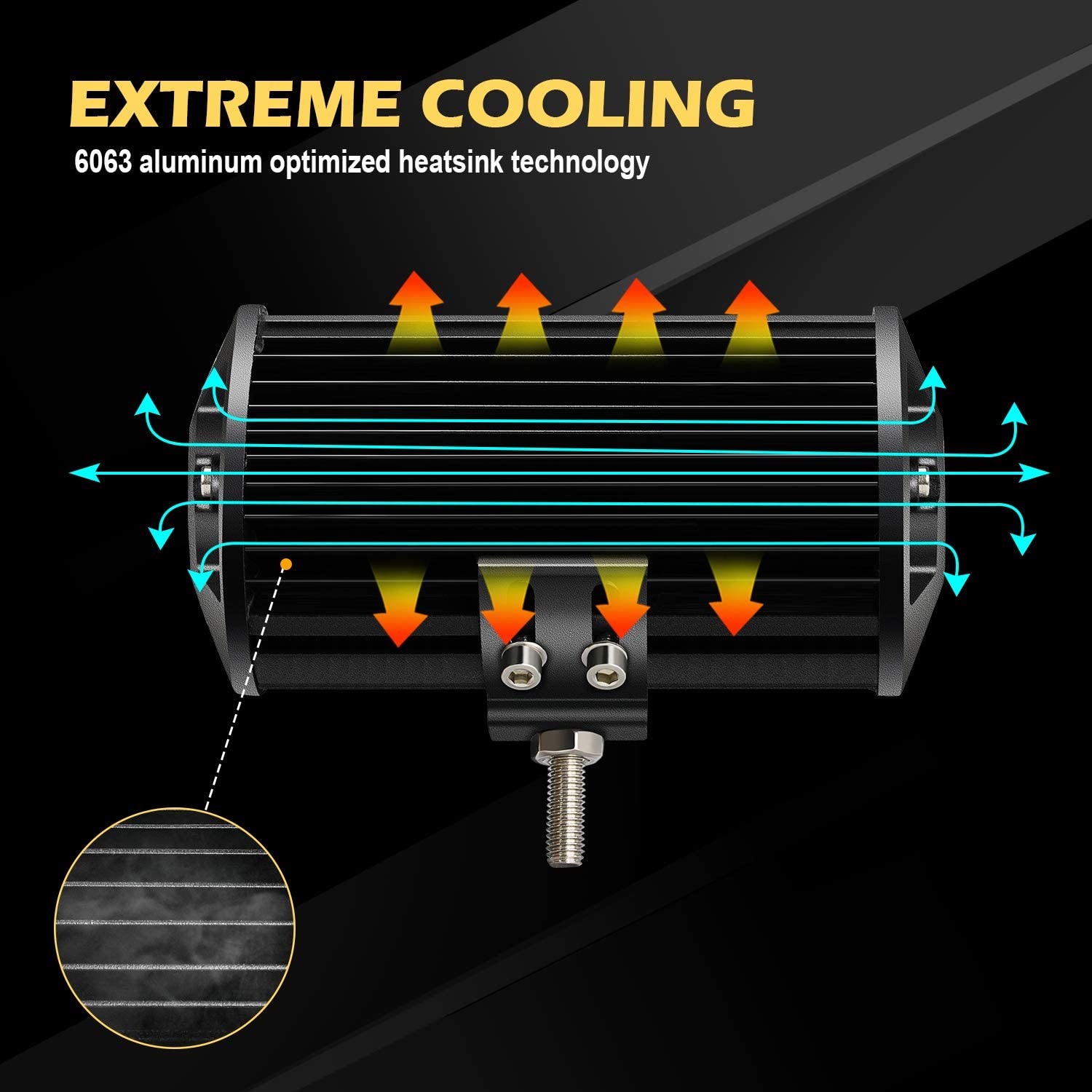 EFFICIENT HEAT DISSIPATION: Supper thin thermal fins ensure effective heat dissipation for the light bars. High quality aluminum alloy heat sinks maximize surface area for optimal cooling.