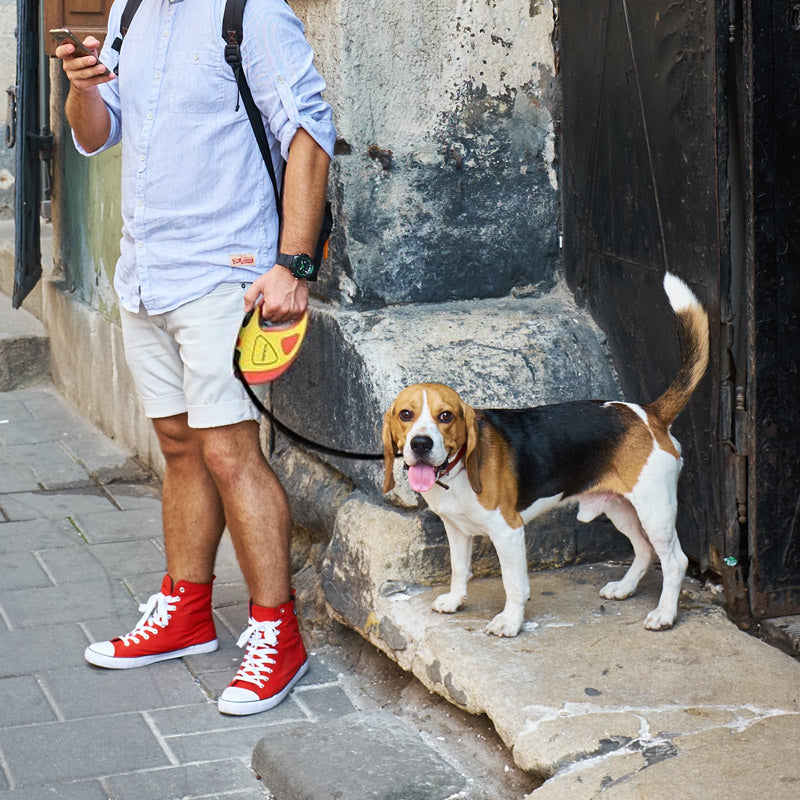 Design: One-touch button, With this button you can easily control the release of the leash, let the dog move freely, retract it when needed, and lock the length of the leash to suit your comfort