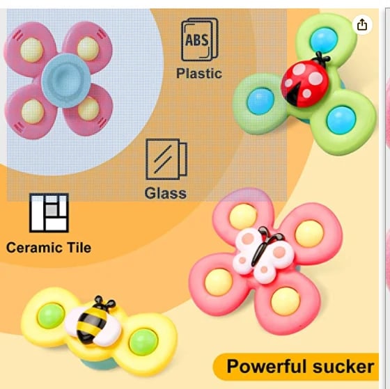 Great toy for 1,2,3 year olds. BPA-free, latex-free, petroleum-free, lead-free and phthalate-free, safe for baby to use. The soft rubber suction cups on the bottom can be sucked on any flat surface so that your baby can easily move around too.