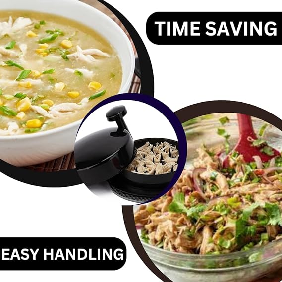 - 🥩Easy to Use: A great addition to any kitchen, this convenient Chicken Shredder is a portable, multifunctional kitchen tool that can easily chop food. All you have to do is put the meat into the chamber, close the lid, and then use the integrated handle to rotate it a few times. A non skid base provides extra stability to keep the shredder in place while in use.